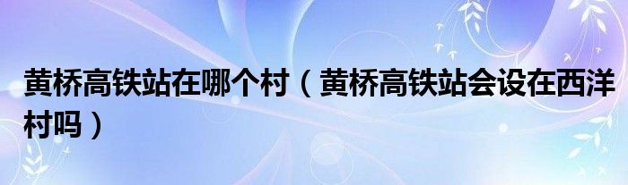 大家好,小育来为大家讲解下。黄桥高铁站在哪个村,黄桥高铁站会设在西洋村吗很多人还不知道,现在让我们一起来看看吧!