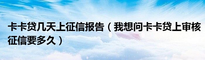 大家好,小育来为大家讲解下。卡卡贷几天上征信报告,我想问卡卡贷上审核征信要多久很多人还不知道,现在让我们一起来看看吧!