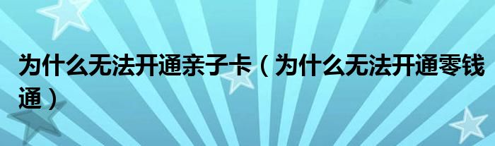 大家好,小育来为大家讲解下。为什么无法开通亲子卡,为什么无法开通零钱通很多人还不知道,现在让我们一起来看看吧!