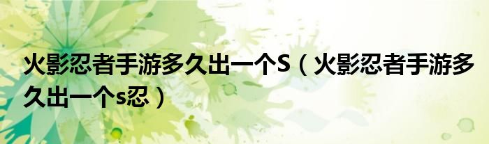 大家好,小育来为大家讲解下。火影忍者手游多久出一个S,火影忍者手游多久出一个s忍很多人还不知道,现在让我们一起来看看吧!