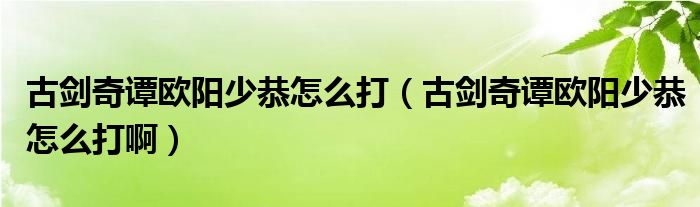 大家好,小育来为大家讲解下。古剑奇谭欧阳少恭怎么打,古剑奇谭欧阳少恭怎么打啊很多人还不知道,现在让我们一起来看看吧!