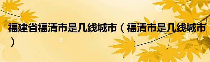 大家好,小育来为大家讲解下。福建省福清市是几线城市,福清市是几线城市很多人还不知道,现在让我们一起来看看吧!