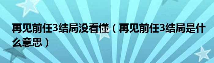 大家好,小育来为大家讲解下。再见前任3结局没看懂,再见前任3结局是什么意思很多人还不知道,现在让我们一起来看看吧!