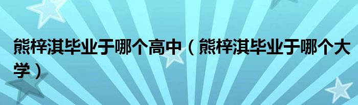 大家好,小育来为大家讲解下。熊梓淇毕业于哪个高中,熊梓淇毕业于哪个大学很多人还不知道,现在让我们一起来看看吧!