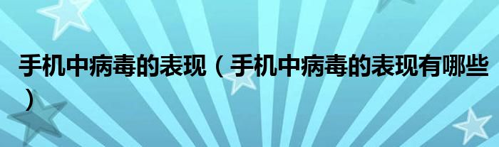 大家好,小育来为大家讲解下。手机中病毒的表现,手机中病毒的表现有哪些很多人还不知道,现在让我们一起来看看吧!