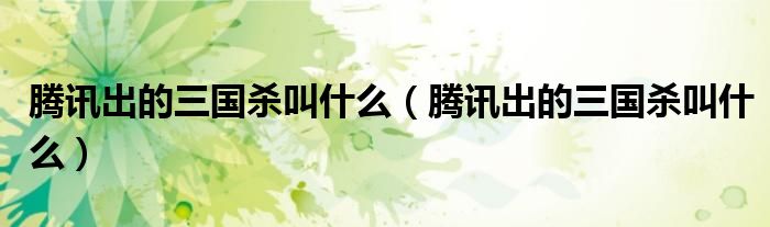 大家好,小育来为大家讲解下。腾讯出的三国杀叫什么,腾讯出的三国杀叫什么很多人还不知道,现在让我们一起来看看吧!