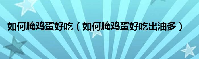 大家好,小育来为大家讲解下。如何腌鸡蛋好吃,如何腌鸡蛋好吃出油多很多人还不知道,现在让我们一起来看看吧!