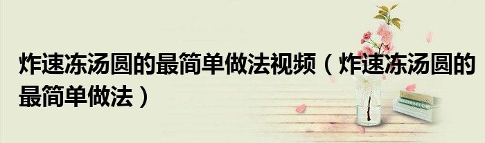 大家好,小育来为大家讲解下。炸速冻汤圆的最简单做法视频,炸速冻汤圆的最简单做法很多人还不知道,现在让我们一起来看看吧!