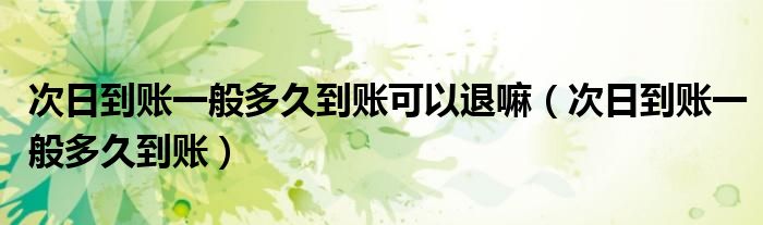 大家好,小育来为大家讲解下。次日到账一般多久到账可以退嘛,次日到账一般多久到账很多人还不知道,现在让我们一起来看看吧!
