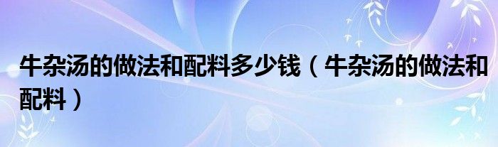 大家好,小育来为大家讲解下。牛杂汤的做法和配料多少钱,牛杂汤的做法和配料很多人还不知道,现在让我们一起来看看吧!