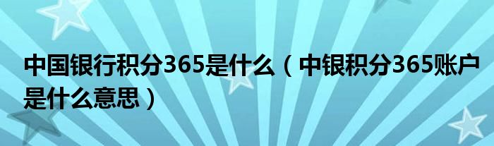 大家好,小育来为大家讲解下。中国银行积分365是什么,中银积分365账户是什么意思很多人还不知道,现在让我们一起来看看吧!
