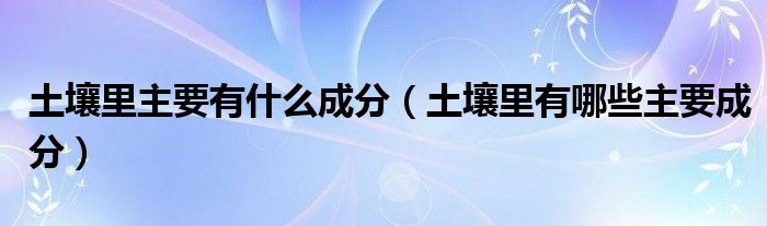 大家好,小育来为大家讲解下。土壤里主要有什么成分,土壤里有哪些主要成分很多人还不知道,现在让我们一起来看看吧!