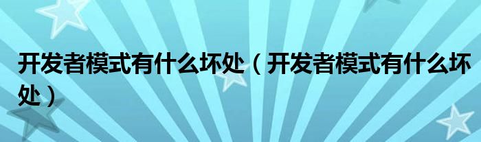 大家好,小育来为大家讲解下。开发者模式有什么坏处,开发者模式有什么坏处很多人还不知道,现在让我们一起来看看吧!