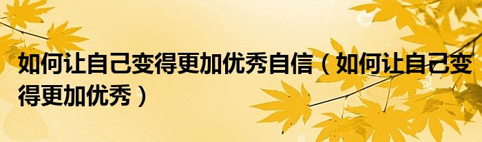 大家好,小育来为大家讲解下。如何让自己变得更加优秀自信,如何让自己变得更加优秀很多人还不知道,现在让我们一起来看看吧!