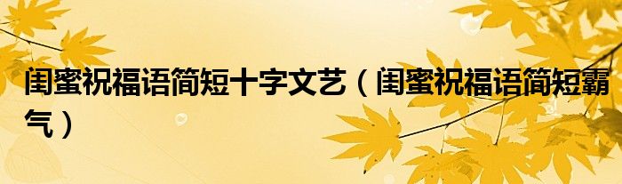 大家好,小育来为大家讲解下。闺蜜祝福语简短十字文艺,闺蜜祝福语简短霸气很多人还不知道,现在让我们一起来看看吧!