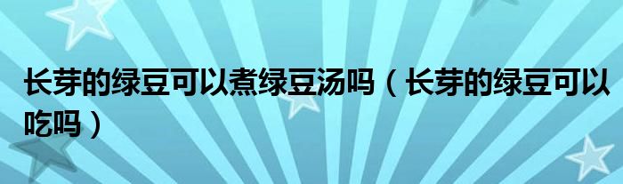 大家好,小育来为大家讲解下。长芽的绿豆可以煮绿豆汤吗,长芽的绿豆可以吃吗很多人还不知道,现在让我们一起来看看吧!