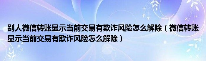 大家好,小育来为大家讲解下。别人微信转账显示当前交易有欺诈风险怎么解除,微信转账显示当前交易有欺诈风险怎么解除很多人还不知道,现在让我们一起来看看吧!