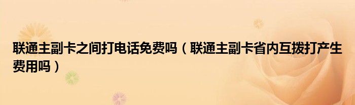 大家好,小育来为大家讲解下。联通主副卡之间打电话免费吗,联通主副卡省内互拨打产生费用吗很多人还不知道,现在让我们一起来看看吧!
