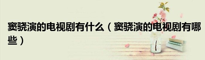 大家好,小育来为大家讲解下。窦骁演的电视剧有什么,窦骁演的电视剧有哪些很多人还不知道,现在让我们一起来看看吧!