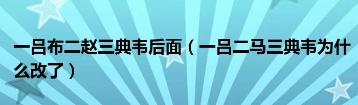 大家好,小育来为大家讲解下。一吕布二赵三典韦后面,一吕二马三典韦为什么改了很多人还不知道,现在让我们一起来看看吧!