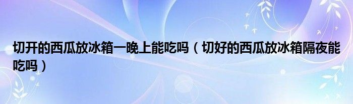 大家好,小育来为大家讲解下。切开的西瓜放冰箱一晚上能吃吗,切好的西瓜放冰箱隔夜能吃吗很多人还不知道,现在让我们一起来看看吧!