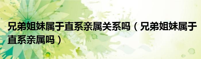 大家好,小育来为大家讲解下。兄弟姐妹属于直系亲属关系吗,兄弟姐妹属于直系亲属吗很多人还不知道,现在让我们一起来看看吧!