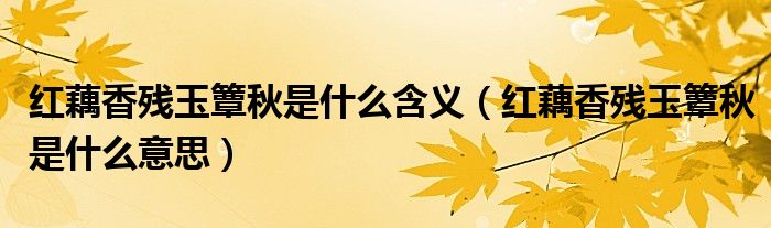 大家好,小育来为大家讲解下。红藕香残玉簟秋是什么含义,红藕香残玉簟秋是什么意思很多人还不知道,现在让我们一起来看看吧!