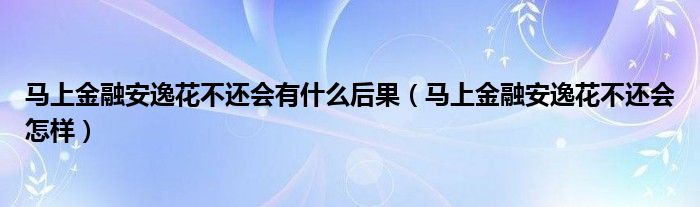 大家好,小育来为大家讲解下。马上金融安逸花不还会有什么后果,马上金融安逸花不还会怎样很多人还不知道,现在让我们一起来看看吧!