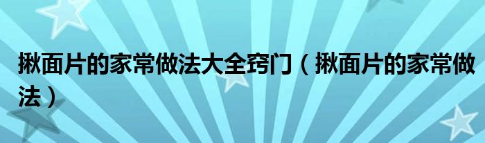 大家好,小育来为大家讲解下。揪面片的家常做法大全窍门,揪面片的家常做法很多人还不知道,现在让我们一起来看看吧!