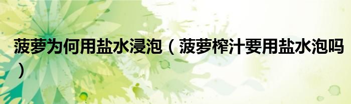 大家好,小育来为大家讲解下。菠萝为何用盐水浸泡,菠萝榨汁要用盐水泡吗很多人还不知道,现在让我们一起来看看吧!