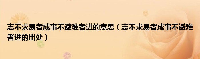 大家好,伊人来为大家解答以上问题。志不求易者成事不避难者进的意思,志不求易者成事不避难者进的出处很多人还不知道,现在让我们一起来看看吧!