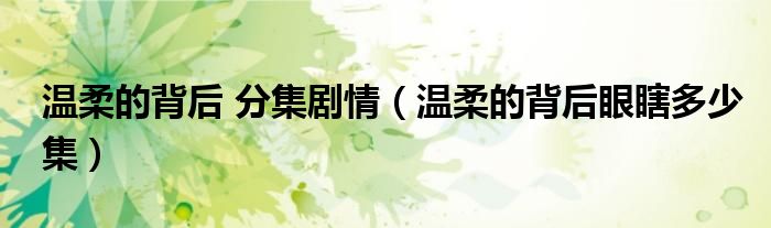 大家好,小育来为大家讲解下。温柔的背后 分集剧情,温柔的背后眼瞎多少集很多人还不知道,现在让我们一起来看看吧!
