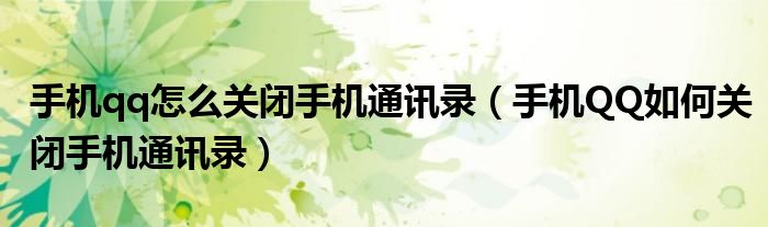 大家好,小育来为大家讲解下。手机qq怎么关闭手机通讯录,手机QQ如何关闭手机通讯录很多人还不知道,现在让我们一起来看看吧!