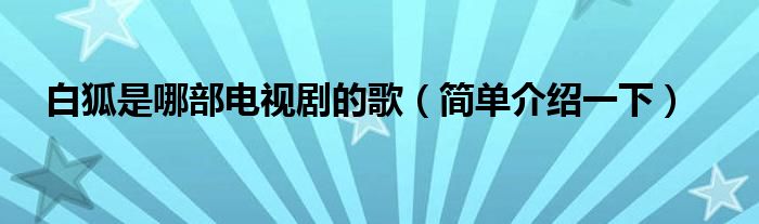 大家好,伊人来为大家解答以上问题。白狐是哪部电视剧的歌,简单介绍一下很多人还不知道,现在让我们一起来看看吧!
