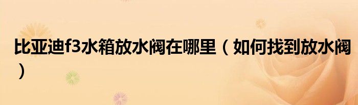 大家好,伊人来为大家解答以上问题。比亚迪f3水箱放水阀在哪里,如何找到放水阀很多人还不知道,现在让我们一起来看看吧!