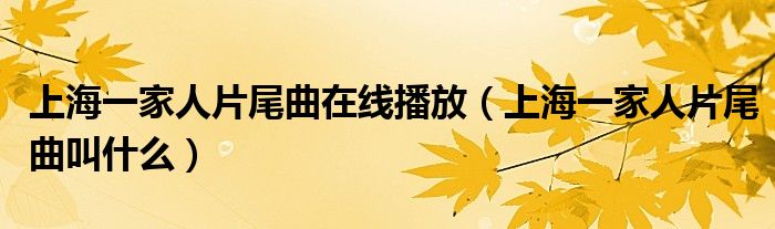 大家好,小育来为大家讲解下。上海一家人片尾曲在线播放,上海一家人片尾曲叫什么很多人还不知道,现在让我们一起来看看吧!