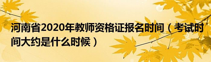 大家好,伊人来为大家解答以上问题。河南省2020年教师资格证报名时间,考试时间大约是什么时候很多人还不知道,现在让我们一起来看看吧!