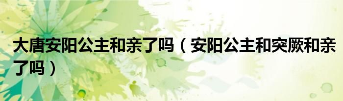 大家好,小育来为大家讲解下。大唐安阳公主和亲了吗,安阳公主和突厥和亲了吗很多人还不知道,现在让我们一起来看看吧!