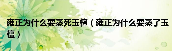 大家好,小育来为大家讲解下。雍正为什么要蒸死玉檀,雍正为什么要蒸了玉檀很多人还不知道,现在让我们一起来看看吧!