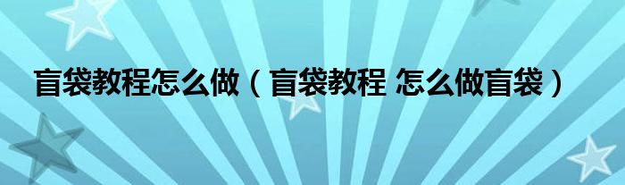 大家好,小育来为大家讲解下。盲袋教程怎么做,盲袋教程 怎么做盲袋很多人还不知道,现在让我们一起来看看吧!