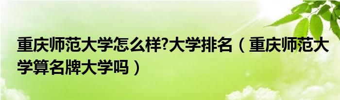 大家好,小育来为大家讲解下。重庆师范大学怎么样?大学排名,重庆师范大学算名牌大学吗很多人还不知道,现在让我们一起来看看吧!