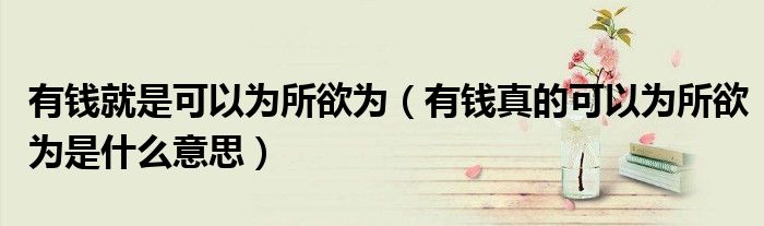 大家好,小育来为大家讲解下。有钱就是可以为所欲为,有钱真的可以为所欲为是什么意思很多人还不知道,现在让我们一起来看看吧!