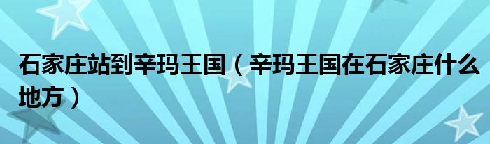 大家好,小育来为大家讲解下。石家庄站到辛玛王国,辛玛王国在石家庄什么地方很多人还不知道,现在让我们一起来看看吧!