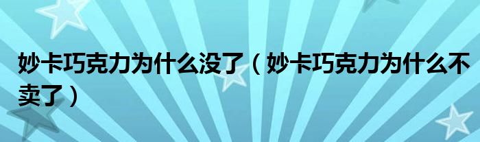 大家好,小育来为大家讲解下。妙卡巧克力为什么没了,妙卡巧克力为什么不卖了很多人还不知道,现在让我们一起来看看吧!