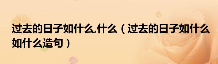 大家好,小育来为大家讲解下。过去的日子如什么,什么,过去的日子如什么如什么造句很多人还不知道,现在让我们一起来看看吧!