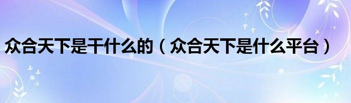 大家好,小育来为大家讲解下。众合天下是干什么的,众合天下是什么平台很多人还不知道,现在让我们一起来看看吧!