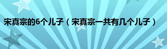 大家好,小育来为大家讲解下。宋真宗的6个儿子,宋真宗一共有几个儿子很多人还不知道,现在让我们一起来看看吧!