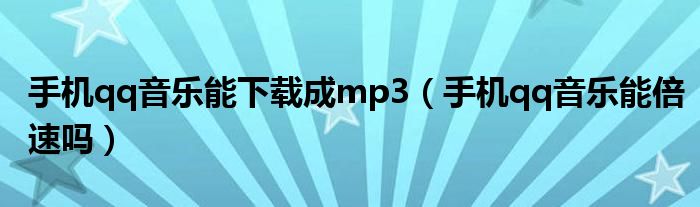 大家好,小育来为大家讲解下。手机qq音乐能下载成mp3,手机qq音乐能倍速吗很多人还不知道,现在让我们一起来看看吧!
