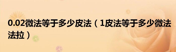 大家好,小育来为大家讲解下。0.02微法等于多少皮法,1皮法等于多少微法法拉很多人还不知道,现在让我们一起来看看吧!