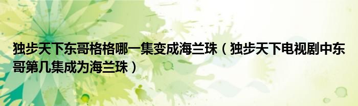 大家好,小育来为大家讲解下。独步天下东哥格格哪一集变成海兰珠,独步天下电视剧中东哥第几集成为海兰珠很多人还不知道,现在让我们一起来看看吧!